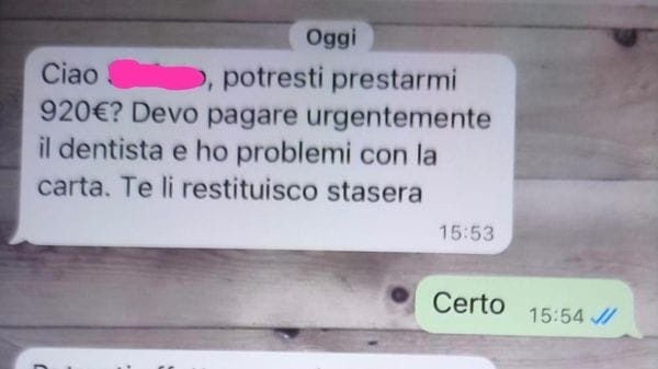 «Mi presti i soldi per pagare il dentista?» Due tentativi di truffa su WhatsApp