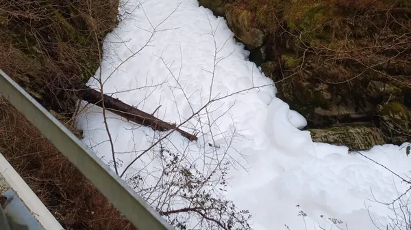 A Valdilana il corso d’acqua prima è stato coperto da uno strato di schiuma e poi si è colorato di verde