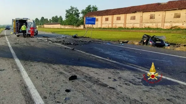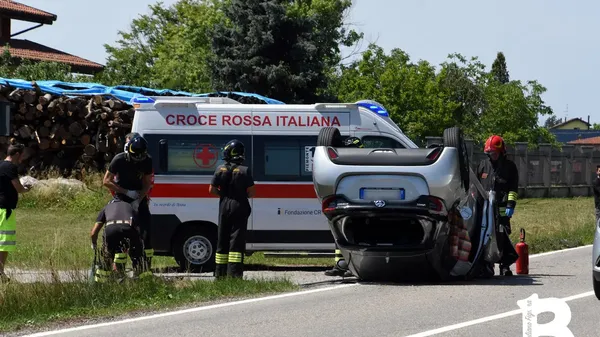Brusnengo, auto si ribalta sulla provinciale per Gattinara. Foto