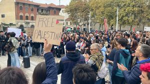 «Siamo in 350» dicono gli studenti della protesta organizzata in poche ore. Gli slogan e gli striscioni su Palestina e Italia
