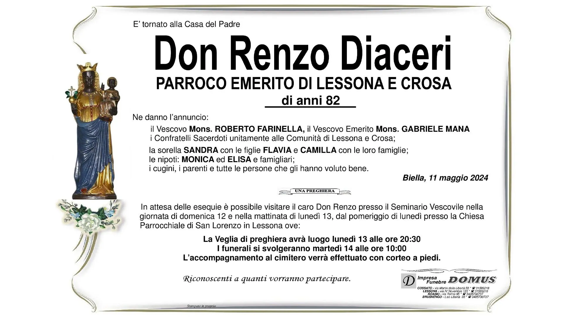 Parroco emerito di Lessona e Crosa