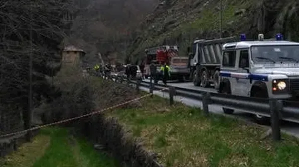 Una frana in Valle Cervo: carreggiata invasa dai detriti