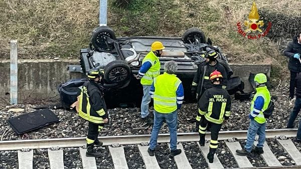 Nella vettura non c’era nessuno. Illesi i passeggeri del convoglio. Sul posto 118, vigili del fuoco, carabinieri e personale delle ferrovie