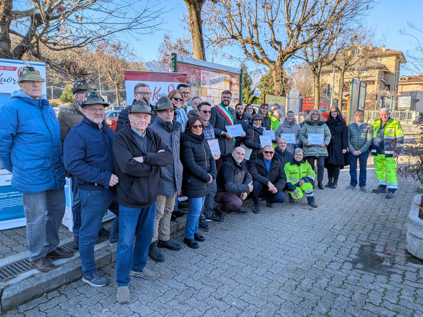 Inaugurato a Mongrando il primo dei tre defibrillatori donati alla comunità dai commercianti. Foto