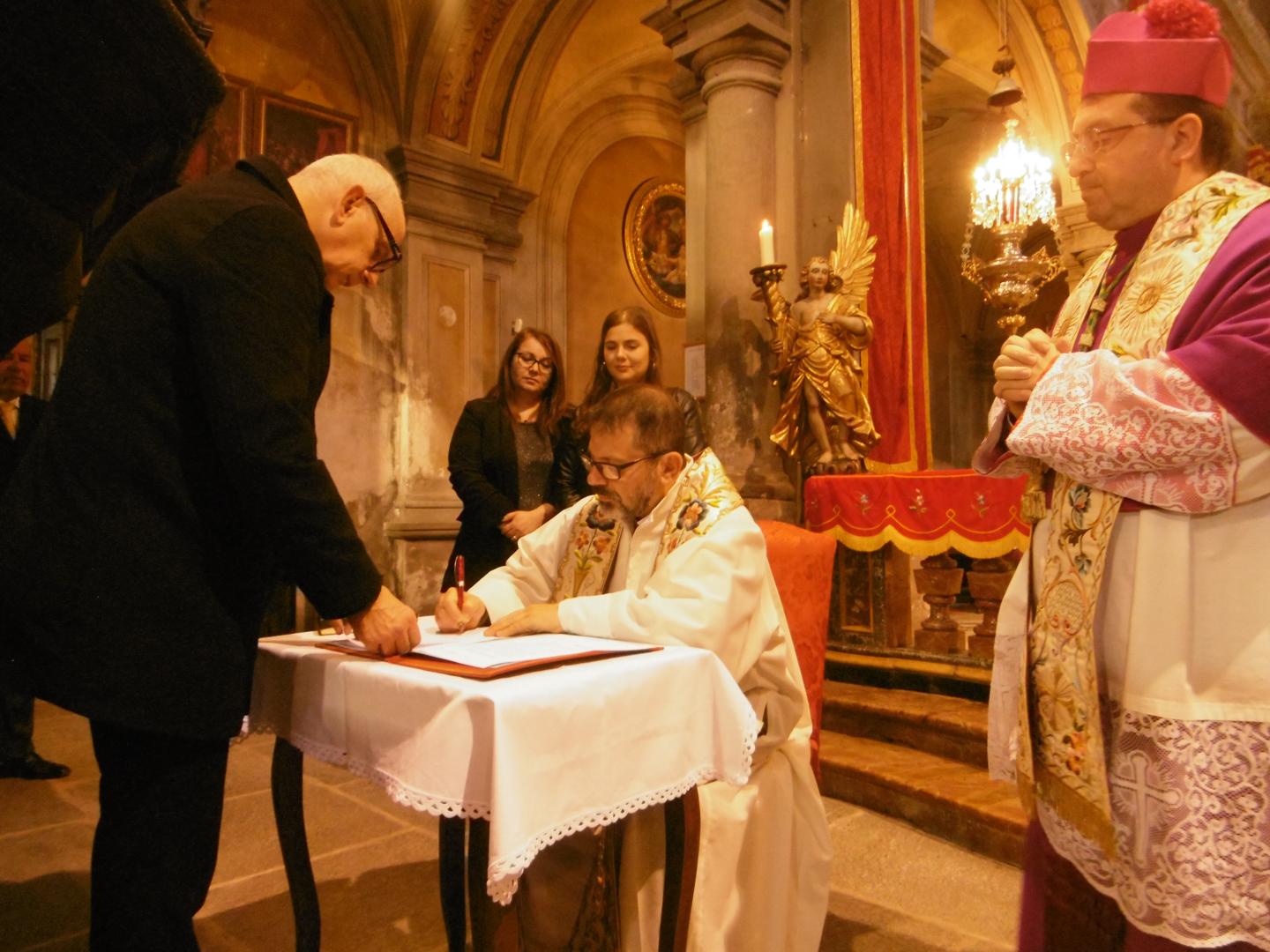 La cerimonia ha preso il via con l’accoglienza rituale sul sagrato della chiesa parrocchiale, con la posa della stola sulle spalle di don Enzo da parte del Vescovo, affiancato dal canonico don Massimo Minola, da don Gabriele Leone e da padre Fabio De Lorenzo.Il Vescovo si è così rivolto ai fedeli.«Oggi è un giorno di gioia e di speranza per le nostre comunità della Valle Oropa. La sua nomina è segno di continuità e di fiducia, ma anche un invito a rinnovare insieme il nostro impegno di fede». Don Enzo, nell’omelia, alla presenza dei suoi familiari, si è così rivolto ai fedeli. «Il Vangelo di oggi si ricollega a quello di domenica scorsa e pone l’accento sull’umiltà e sull’insistenza nella preghiera che si trasforma in tenerezza di Dio. Occorre far verità su noi stessi, chiamando per nome la nostra miseria, noi saremo giudicati da quanto avremo amato, da quanto saremo riusciti a essere dei testimoni credibili». Al termine della funzione don Enzo ha ringraziato commosso le parrocchie per tutto il loro affettuoso impegno nell’accoglierlo come loro pastore. È seguito il rinfresco in oratorio offerto dalle tre comunità.