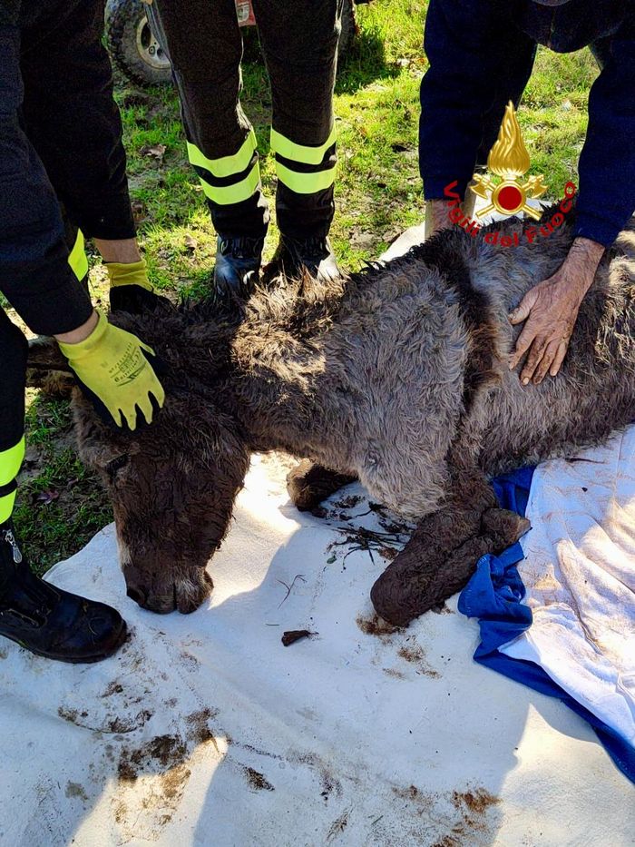 Una squadra dei vigili del fuoco di Biella è intervenuta a Valdengo per soccorrere un’asinella di nome Penelope. L’animale, in ipotermia, era rimasta intrappolata in una zona di campo paludosa.