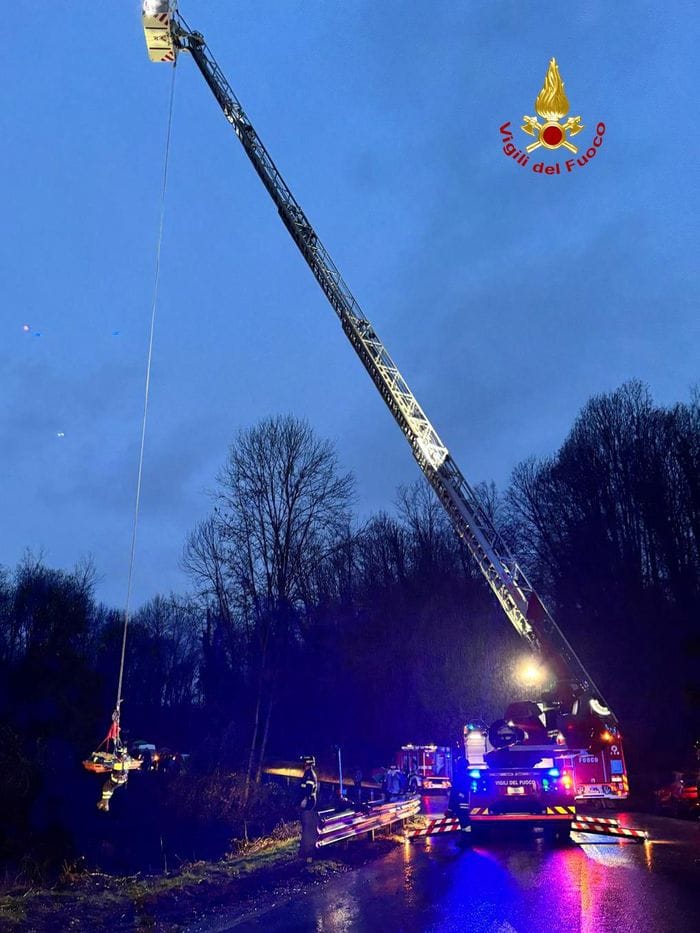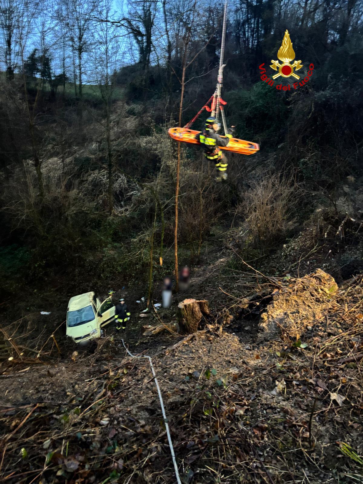 Vigili del fuoco estraggono donna dall’auto: aveva fatto un volo di sette metri