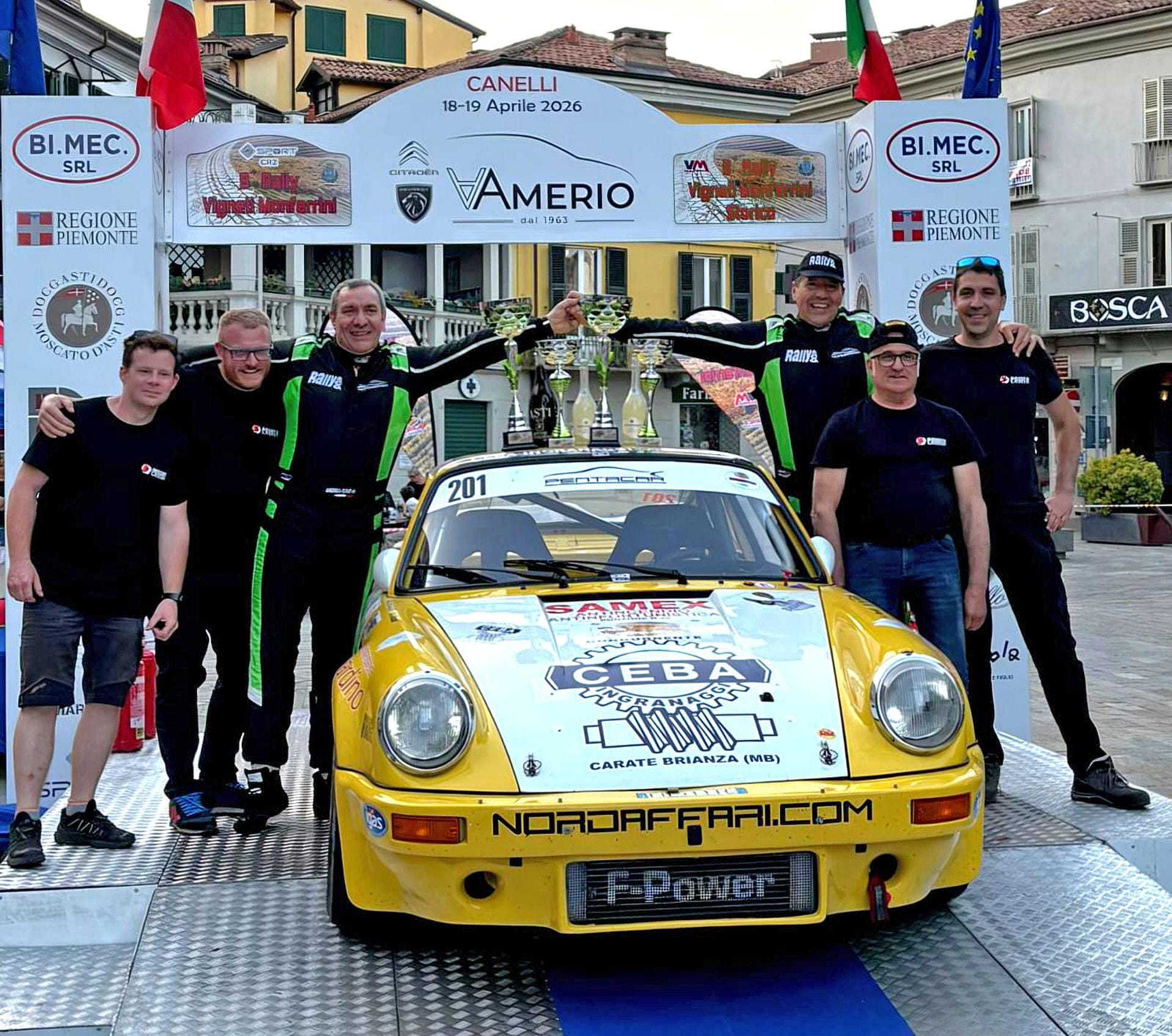 Vittoria schiacciante per Marco Bertinotti e Andrea Rondi al 3° Rally storico dei Vigneti Monferrini a Canelli. L’equipaggio di Rally & Co sulla Porsche 911 RSR ha lasciato solo le briciole agli avversari aggiudicandosi tutte le otto prove speciali e chiudendo con un vantaggio di ben 3 minuti e mezzo sui più immediati inseguitori, in gara con due Bmw M3 E30: Paolo Pastrone con Luca Pieri arrivati a 3’30” e Franco Volpino con Simona Albesano a 3’45”