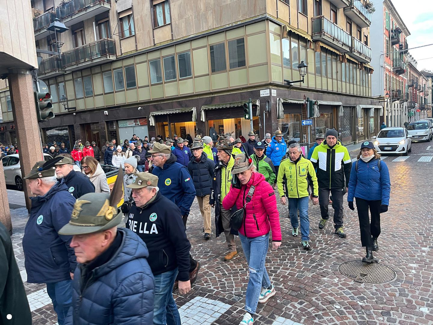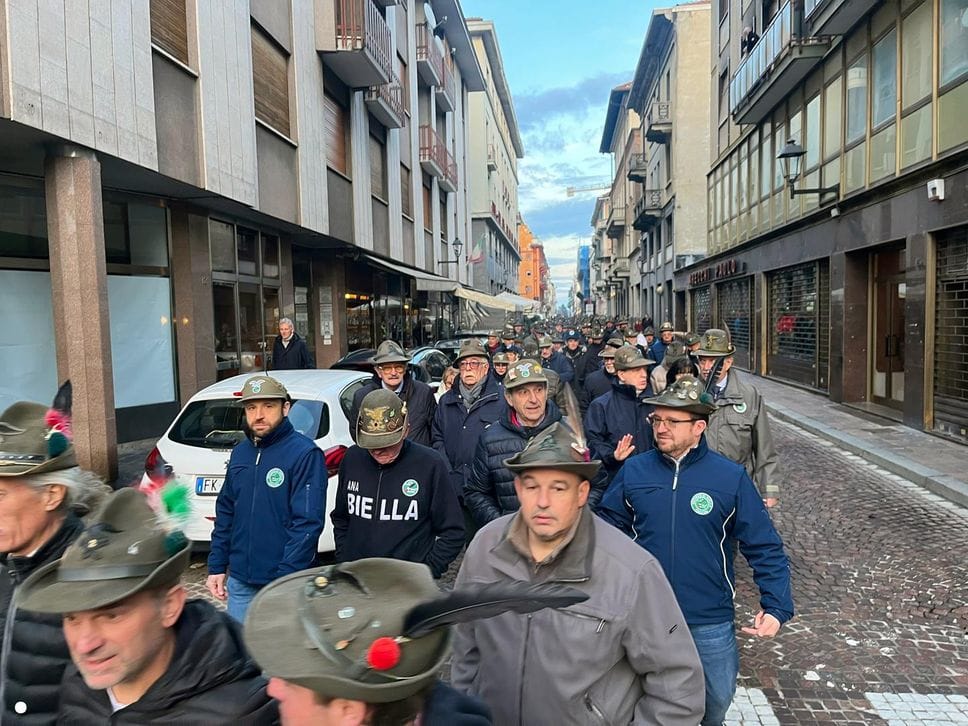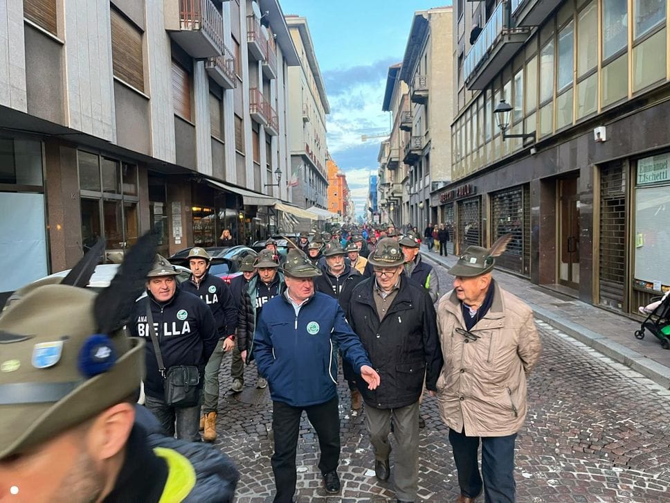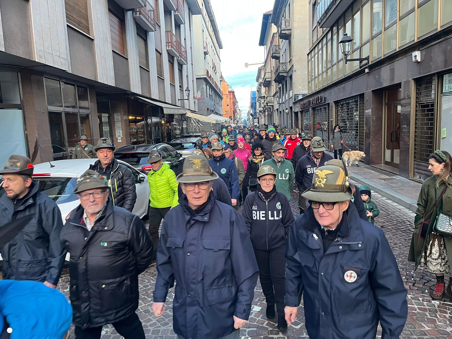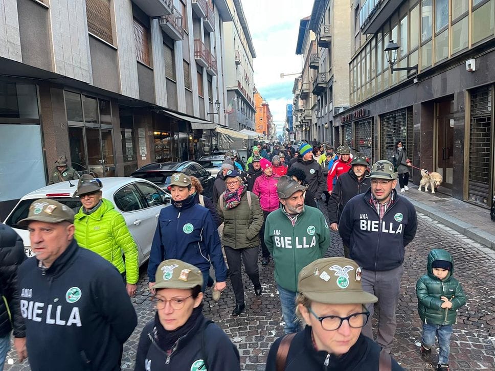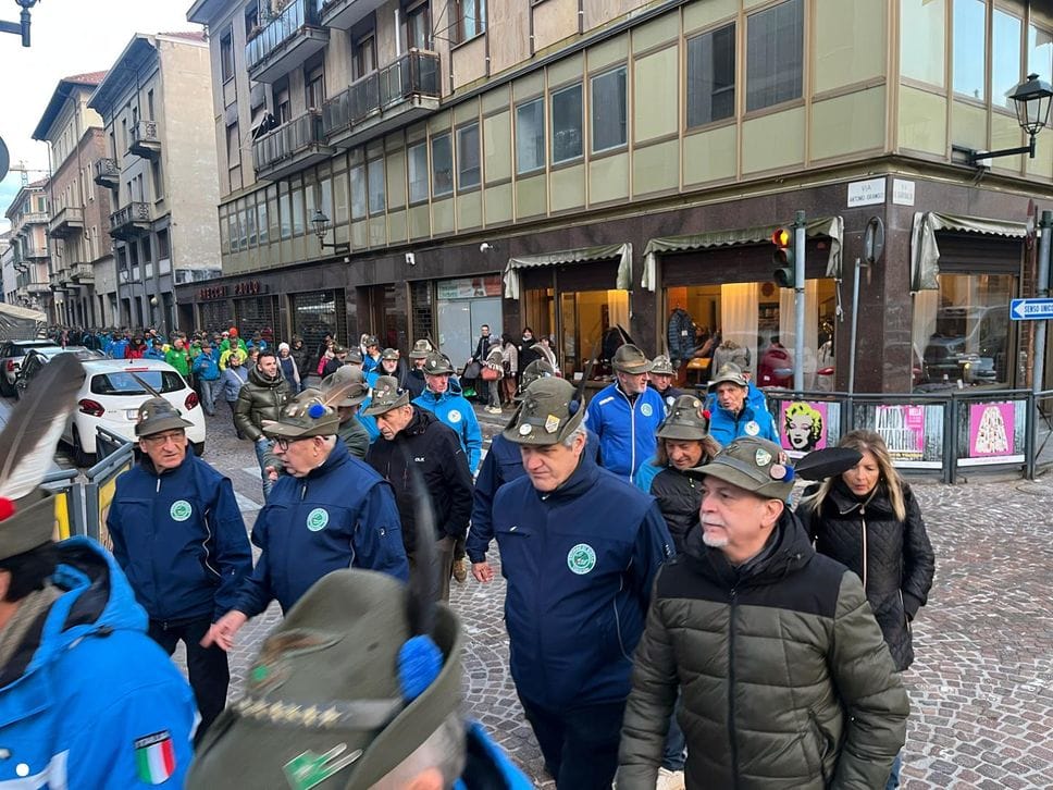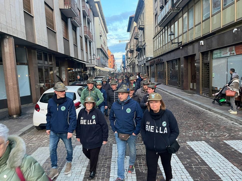 Un lungo serpentone tricolore sabato pomeriggio ha attraversato il centro di Biella: erano gli alpini, gli aggregati, gli amici degli alpini, arrivati nella nostra città per il Campionato Nazionale di Sci, specialità slalom gigante, in programma domenica mattina a Bielmonte. Un ritorno allo scorso maggio quando Biella fu invasa dalle penne nere per l’adunata nazionale, rimasta sia nel cuore dei biellesi che delle migliaia di alpini arrivati da tutta Italia. In questa occasione molti meno, chiaramente, ma con tantissime sezioni presenti.