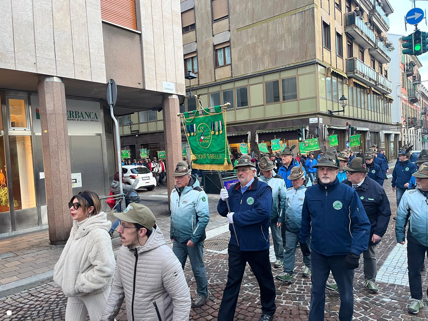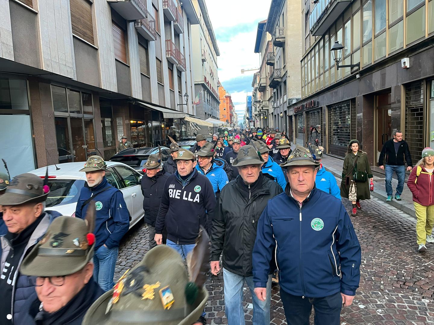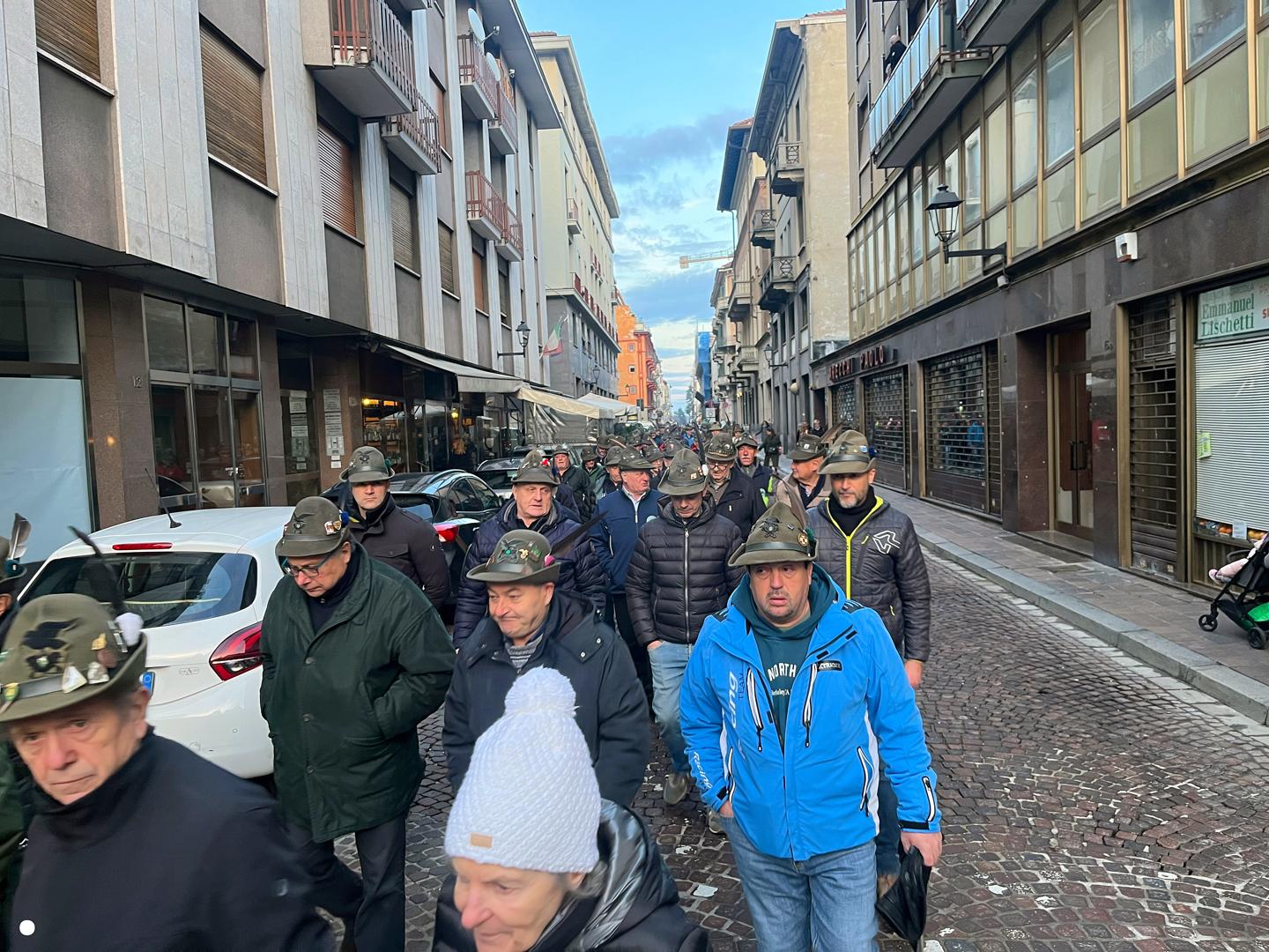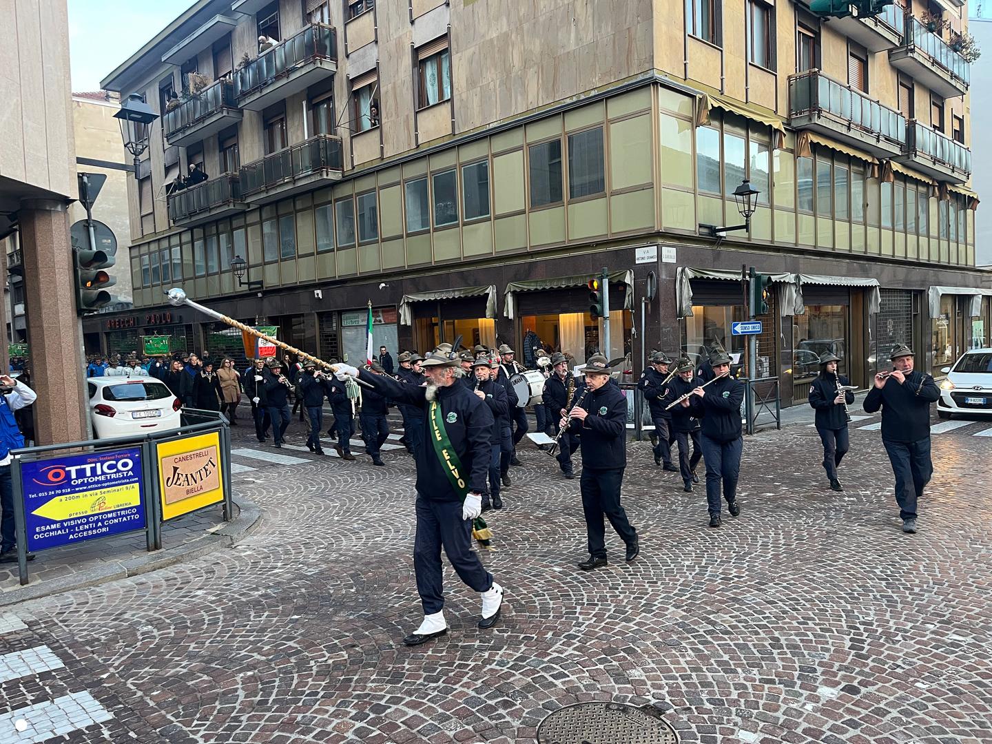 Un lungo serpentone tricolore sabato pomeriggio ha attraversato il centro di Biella: erano gli alpini, gli aggregati, gli amici degli alpini, arrivati nella nostra città per il Campionato Nazionale di Sci, specialità slalom gigante, in programma domenica mattina a Bielmonte. Un ritorno allo scorso maggio quando Biella fu invasa dalle penne nere per l’adunata nazionale, rimasta sia nel cuore dei biellesi che delle migliaia di alpini arrivati da tutta Italia. In questa occasione molti meno, chiaramente, ma con tantissime sezioni presenti.