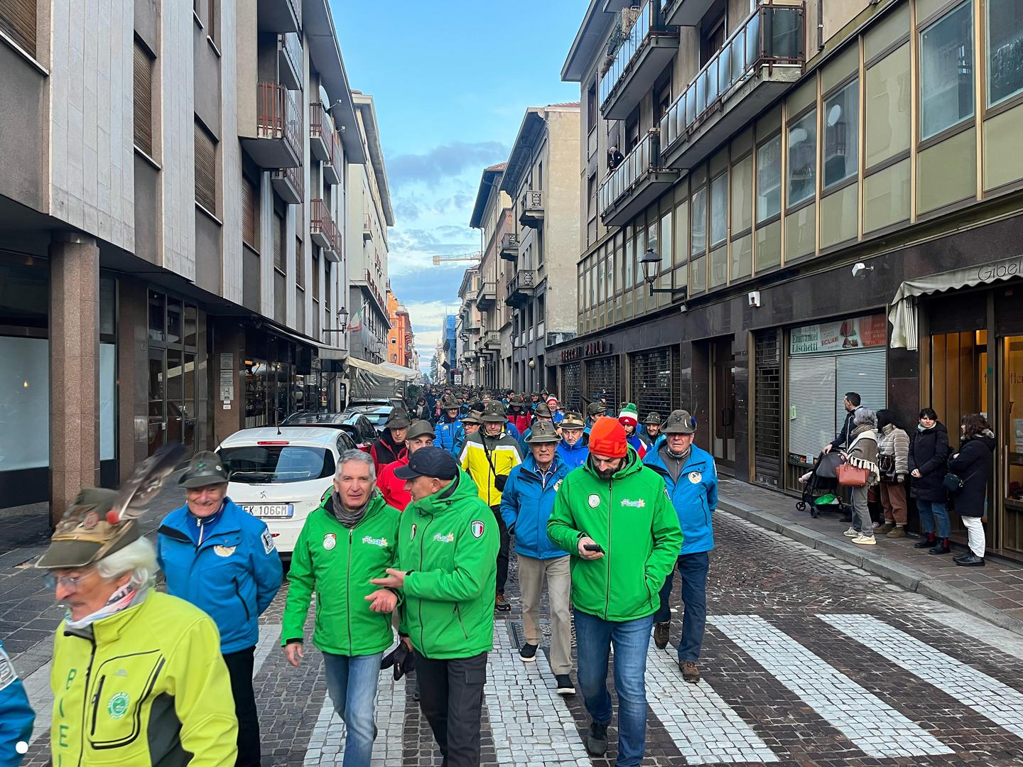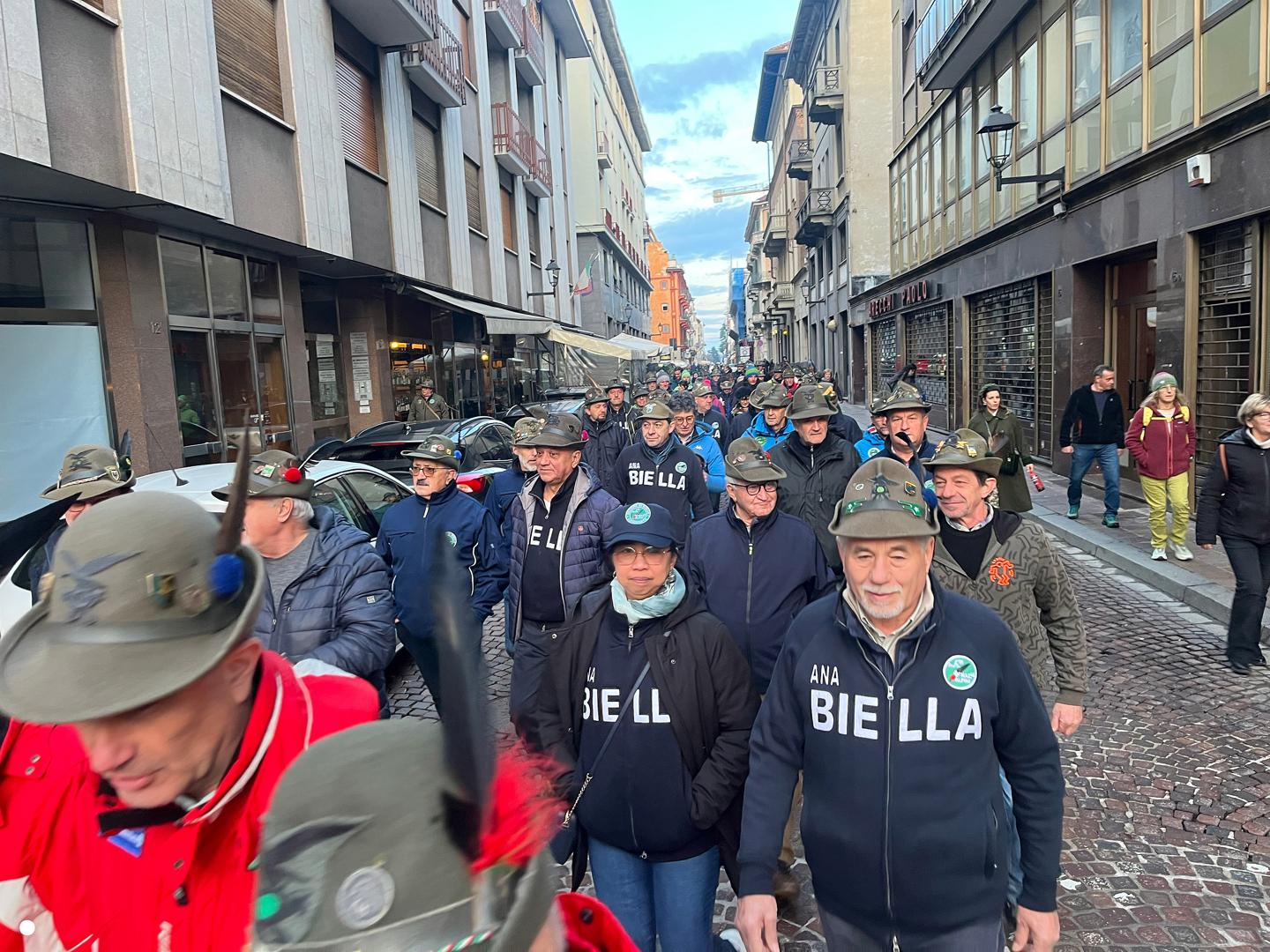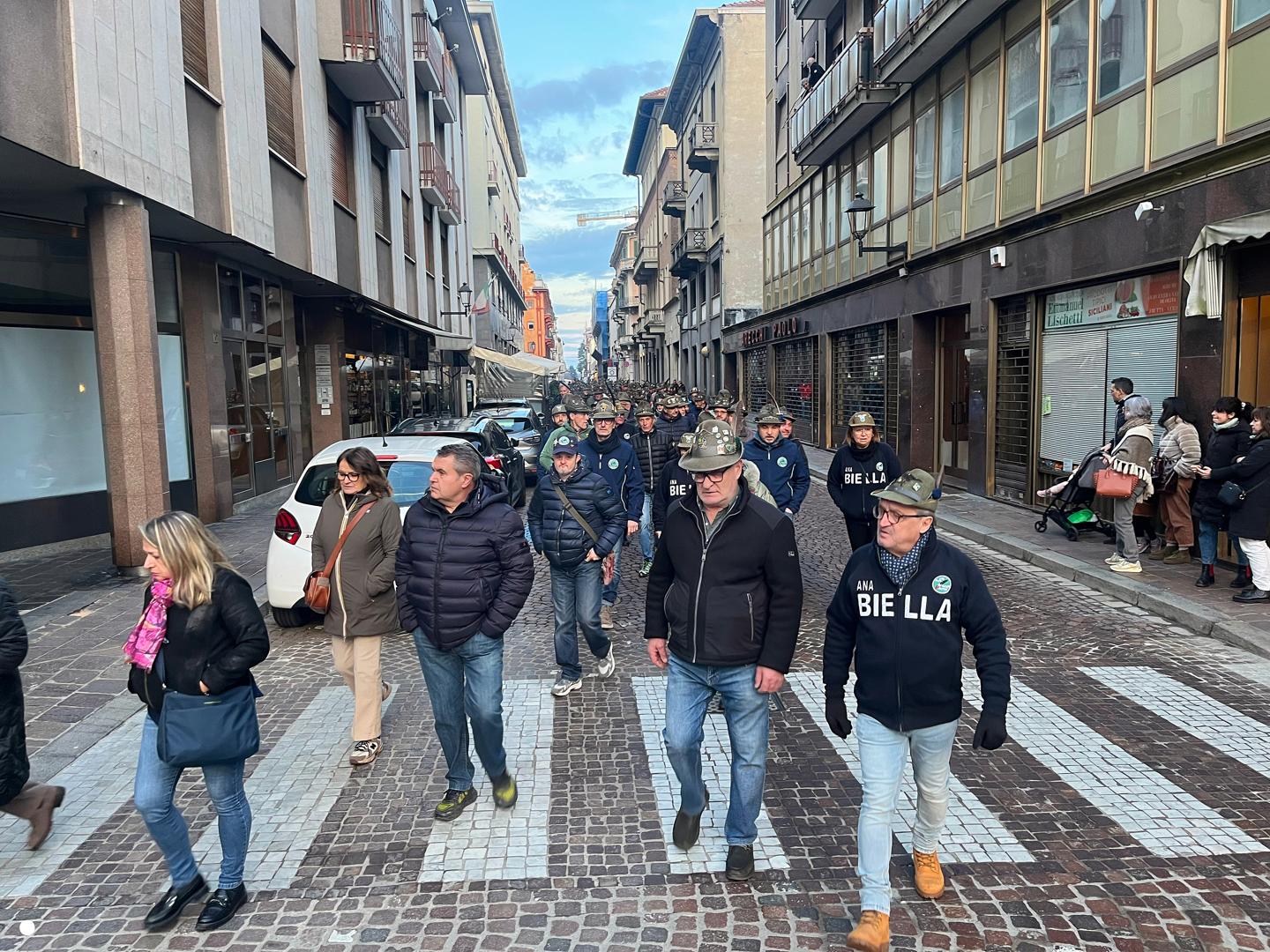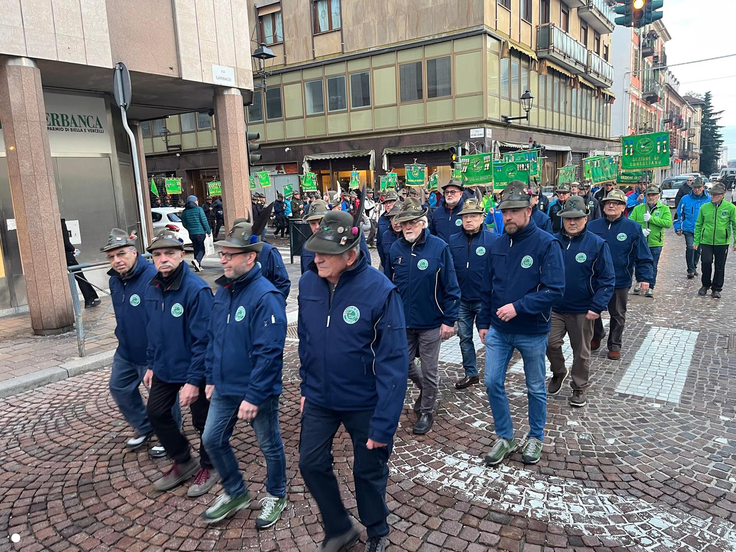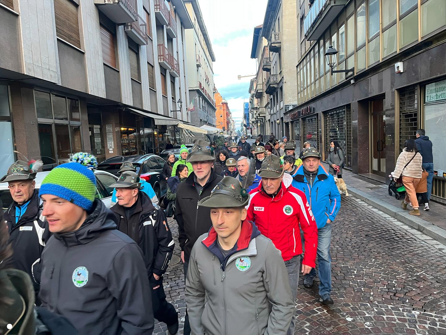 Un lungo serpentone tricolore sabato pomeriggio ha attraversato il centro di Biella: erano gli alpini, gli aggregati, gli amici degli alpini, arrivati nella nostra città per il Campionato Nazionale di Sci, specialità slalom gigante, in programma domenica mattina a Bielmonte. Un ritorno allo scorso maggio quando Biella fu invasa dalle penne nere per l’adunata nazionale, rimasta sia nel cuore dei biellesi che delle migliaia di alpini arrivati da tutta Italia. In questa occasione molti meno, chiaramente, ma con tantissime sezioni presenti.