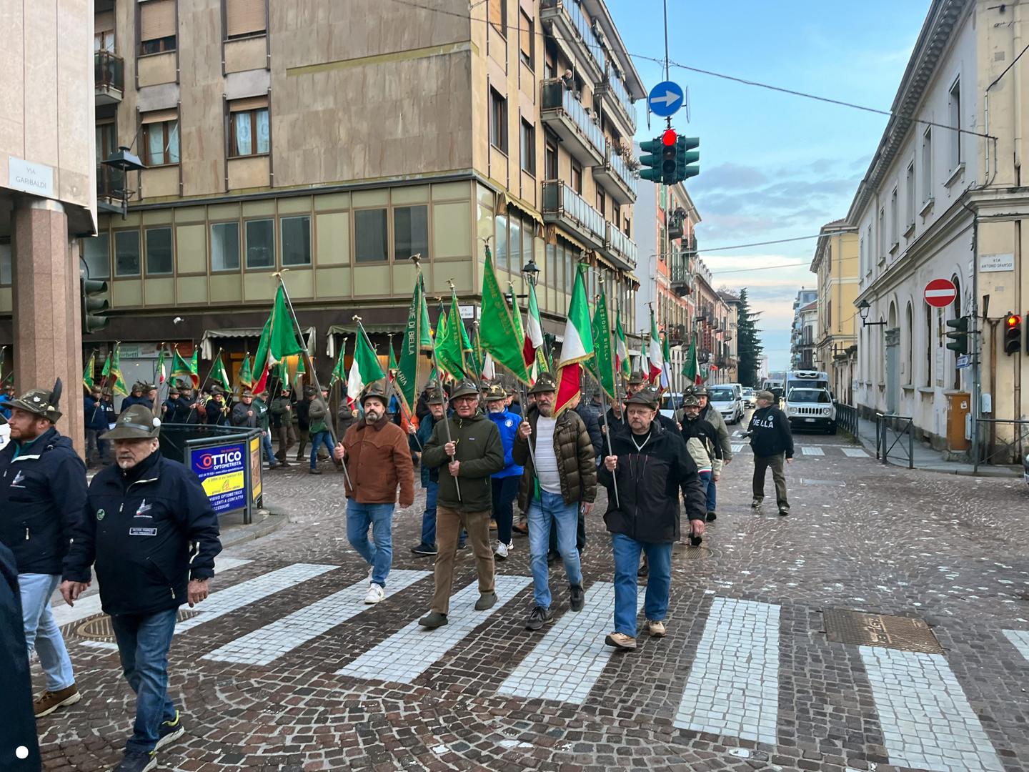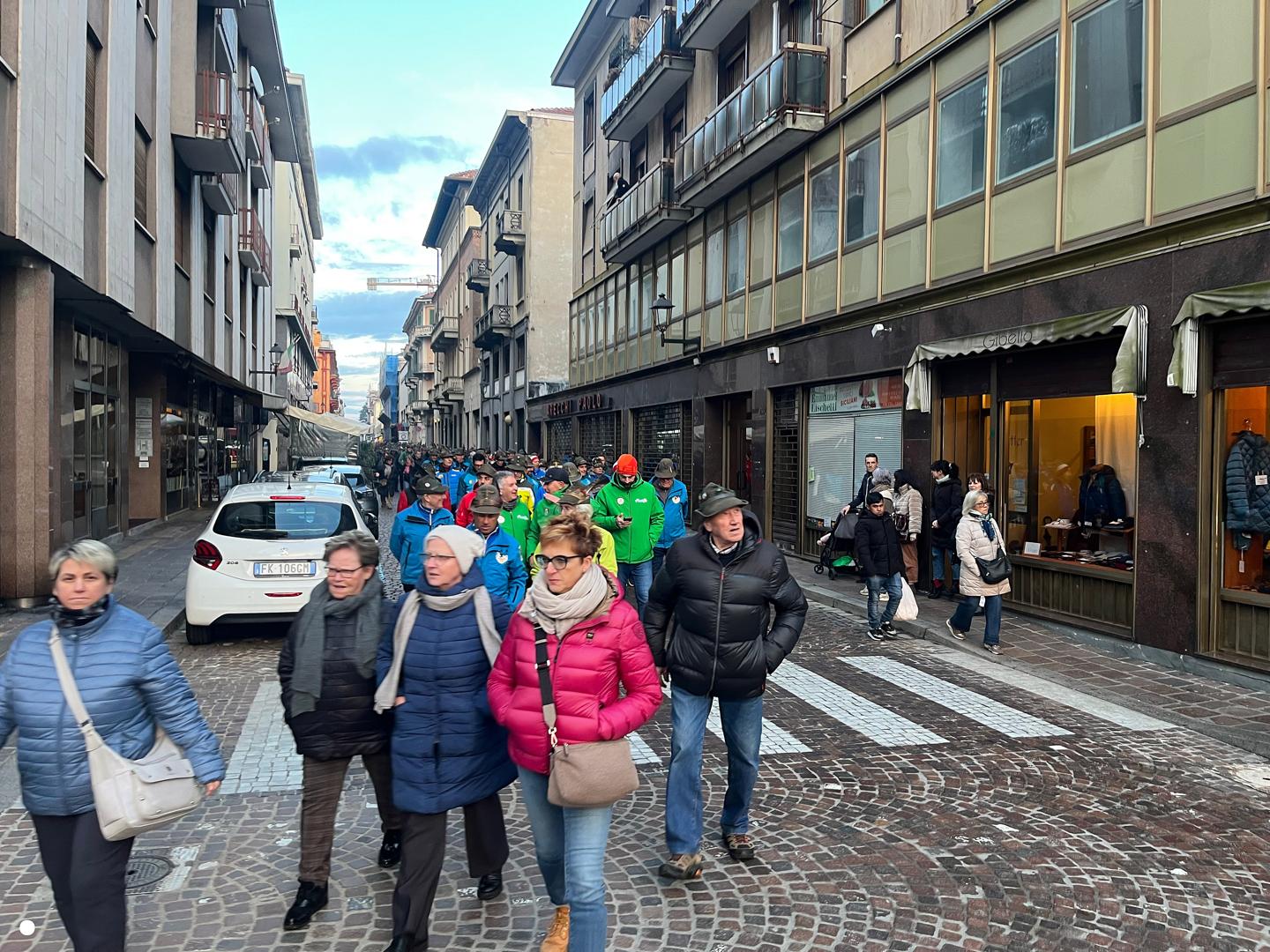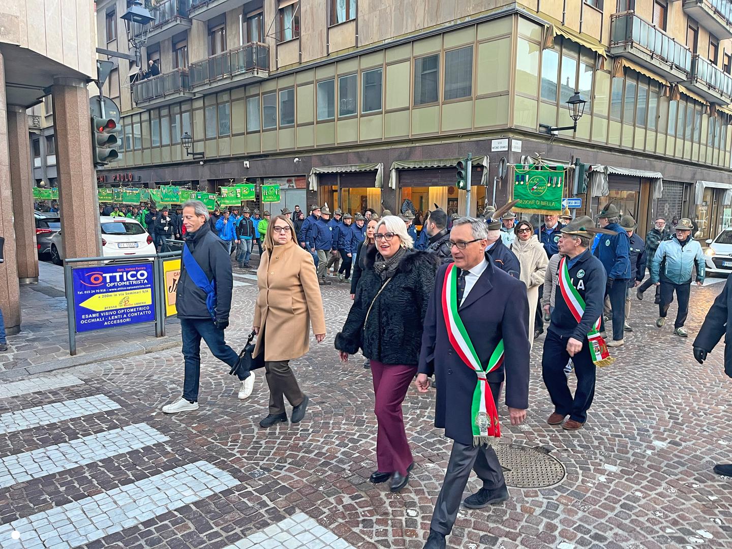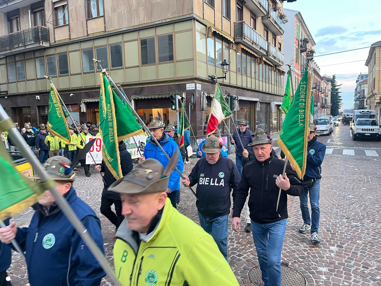 Un lungo serpentone tricolore sabato pomeriggio ha attraversato il centro di Biella: erano gli alpini, gli aggregati, gli amici degli alpini, arrivati nella nostra città per il Campionato Nazionale di Sci, specialità slalom gigante, in programma domenica mattina a Bielmonte. Un ritorno allo scorso maggio quando Biella fu invasa dalle penne nere per l’adunata nazionale, rimasta sia nel cuore dei biellesi che delle migliaia di alpini arrivati da tutta Italia. In questa occasione molti meno, chiaramente, ma con tantissime sezioni presenti.
