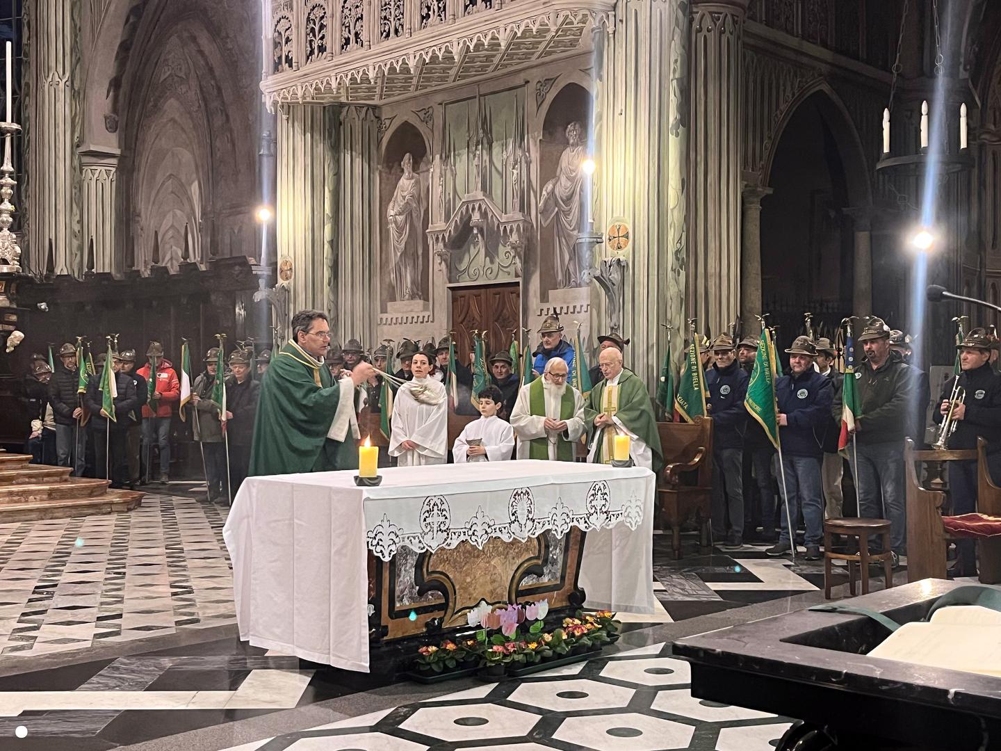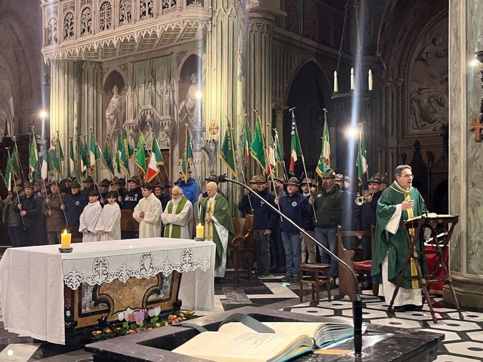 Prima del rompete le righe, il “pomeriggio alpino” si è chiuso con un momento di preghiera. Il vicario generale della diocesi di Biella don Paolo Boffa Sandalina ha accolto le centinaia di persone presenti in piazza all’interno del duomo cittadino per la santa messa. Calore, amicizia e senso di fraternità: queste le sue prime parole ai presenti in un momento in cui il mondo dello sport si è fuso perfettamente con quello della fede cristiana.