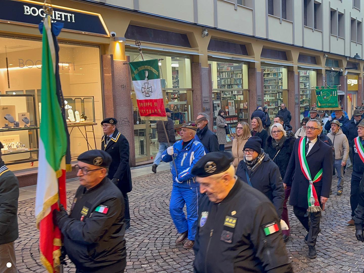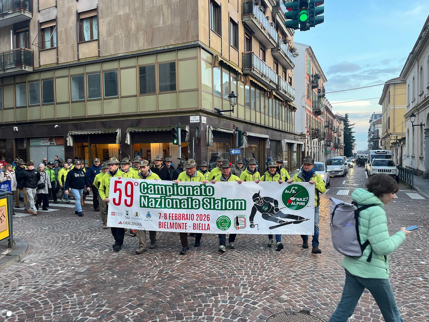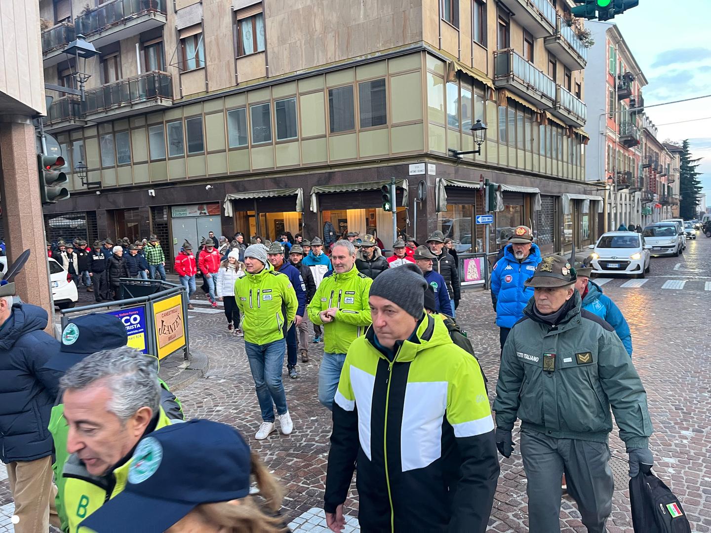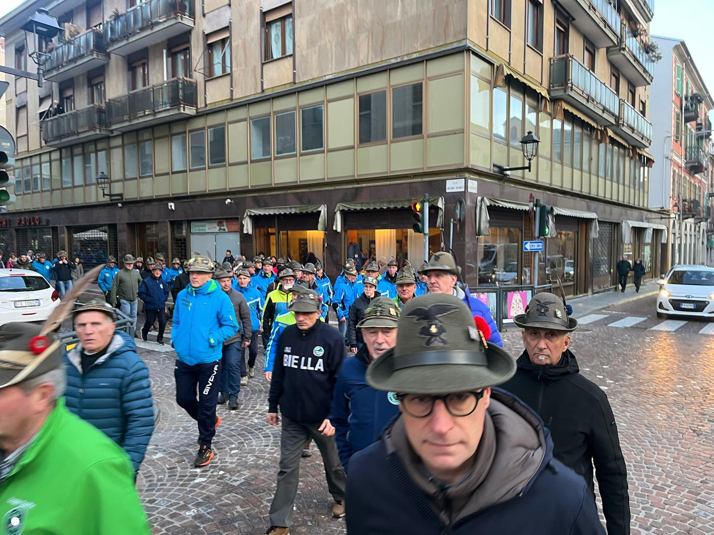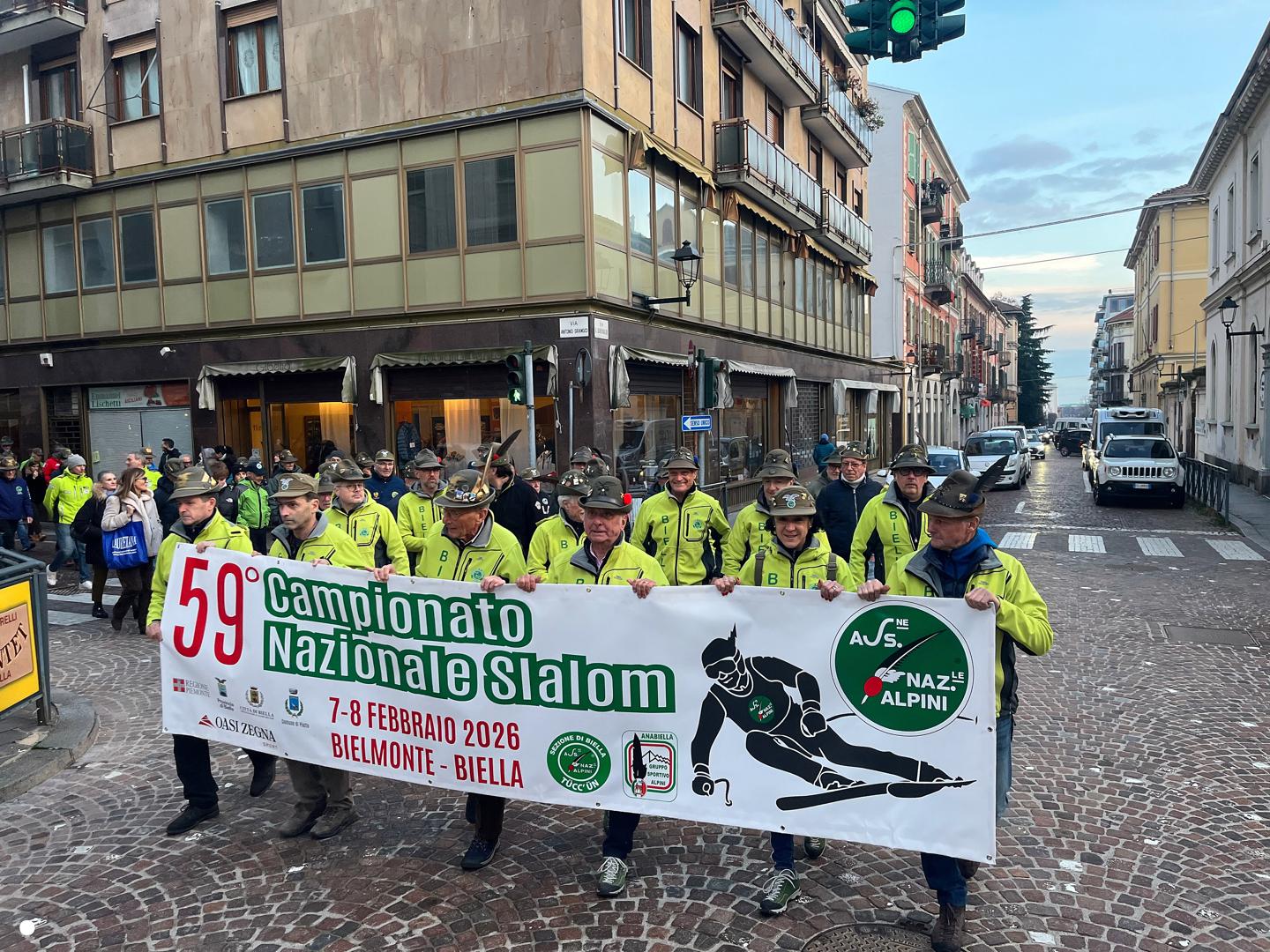 In città alpini, aggregati e amici degli alpini per il campionato di slalom gigante in programma domenica mattina a Bielmonte: sfilata, commemorazioni, accensione del tripode e la santa messa in cattedrale