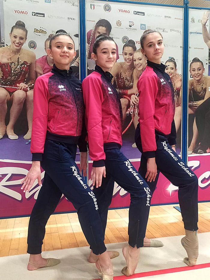Al termine della prima giornata di gare sono scese in pedana nella categoria allieve Martina Di Lorenzo e Giulia Rossi che hanno conquistato il primo posto nelle coppie, così come le tre sorelle Giardina: Caroline al corpo libero fra le young 3° livello, Grace fra le Gold 2 esordienti a corpo libero e fune e Margot nelle Gold 2 allieve con palla e clavette.
