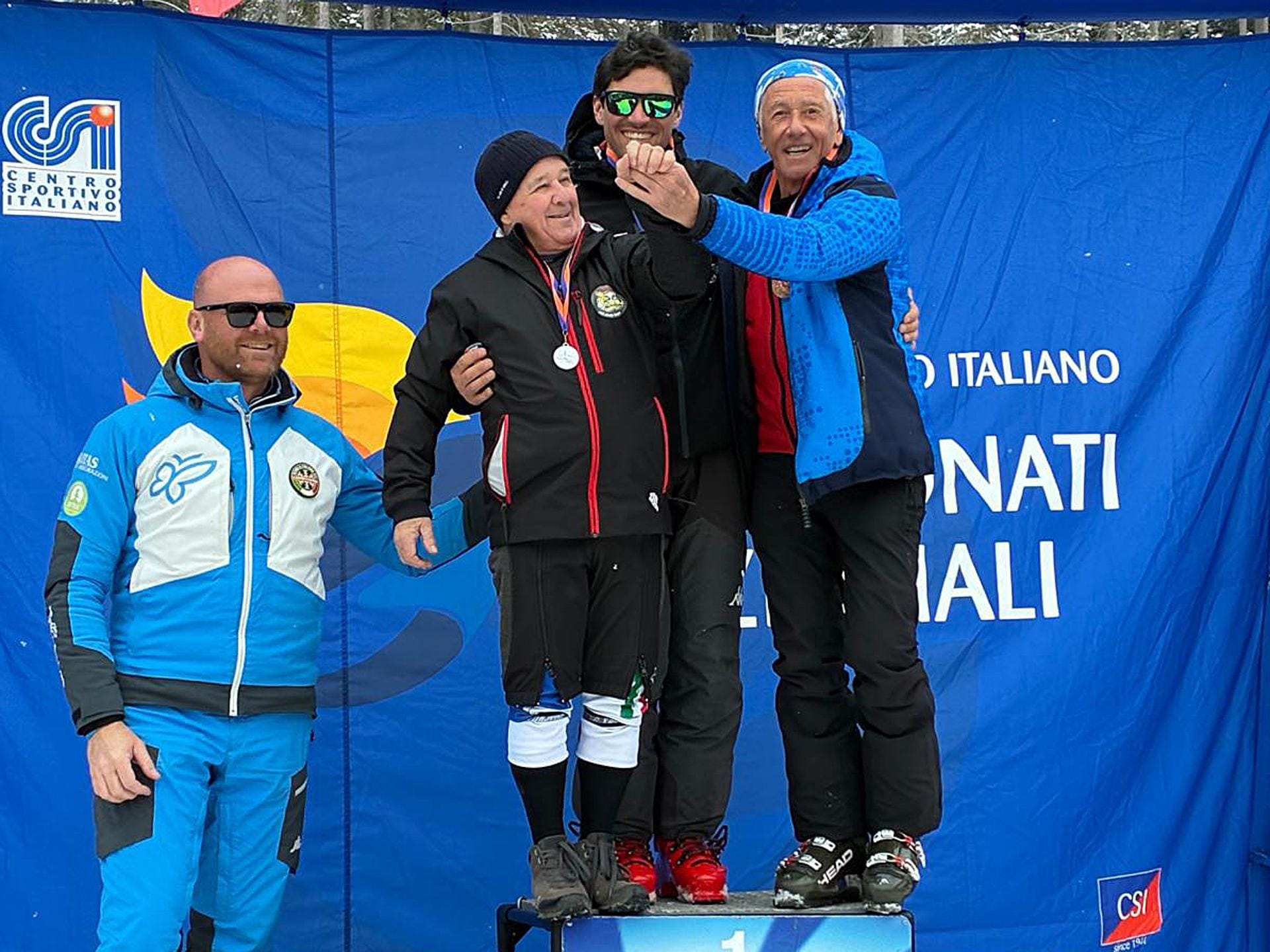 Nello scorso fine settimana si è svolto a San Martino di Castrozza in Trentino il 27° Campionato Nazionale di Sci del Csi. Alla manifestazione hanno partecipato quattro atleti del comitato di Biella, tutti tesserati per l’Asd Mai dire Volley-La Vetta Mongrando, distinguendosi con ottime prestazioni. Paolo Mingardo ha conquistato il terzo posto assoluto nel Trofeo Gold della categoria Veterani B. Gli altri rappresentanti biellesi hanno gareggiato per il Trofeo “Silver”, ottenendo i seguenti piazzamenti: Rocco Mancino 2° assoluto nella categoria Veterani A, Doriano Tessarolo 3° assoluto nella categoria Veterani B e Maurizio Tessarolo, 5° nella medesima categoria.