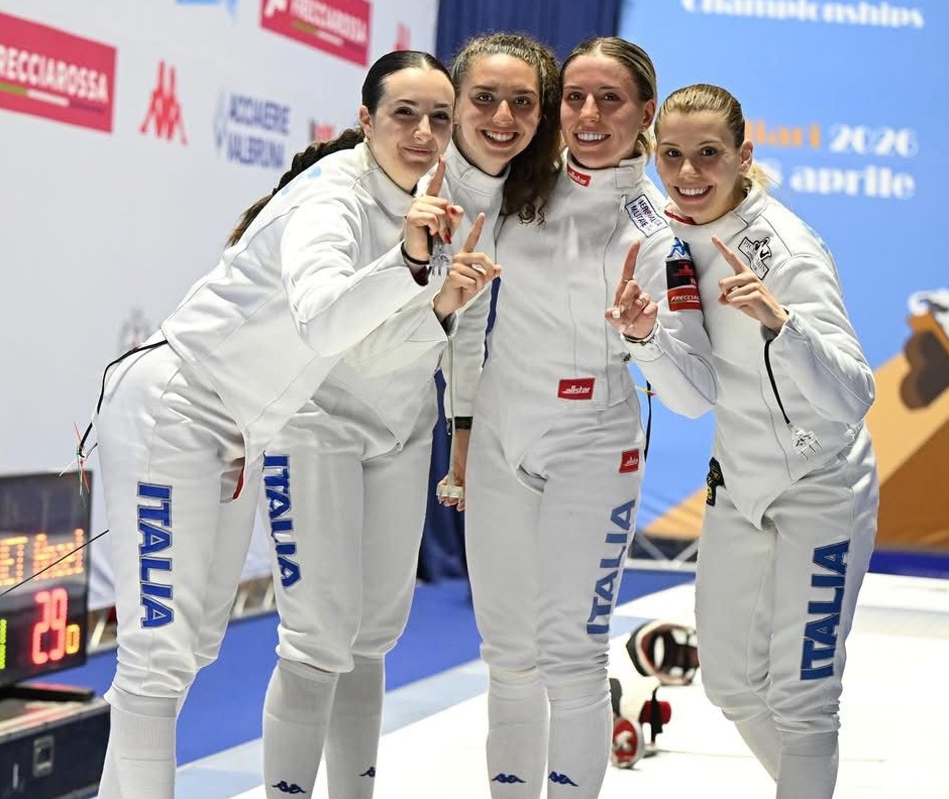 Le Azzurrine della spada sono medaglia d’oro. A Cagliari la squadra femminile dell’Italia conquista il titolo di campionessa d’Europa Under 23 al termine della giornata lunga ma perfetta con percorso netto. Lucrezia Paulis (Fiamme Oro), Gaia Caforio, fresca anche di titolo individuale, Carola Maccagno, entrambe dell’Aeronautica Militare e la biellese Vittoria Siletti (Fiamme Azzurre) hanno sbaragliato la concorrenza eliminando via via nel corso della gara Austria (38-24), Germania (36-35) e in semifinale l’Estonia (45-34). Nella finalissima hanno avuto la meglio sulle rivali della Francia (Doquet, Caron, Francillonne e Laharotte) per 45-29.