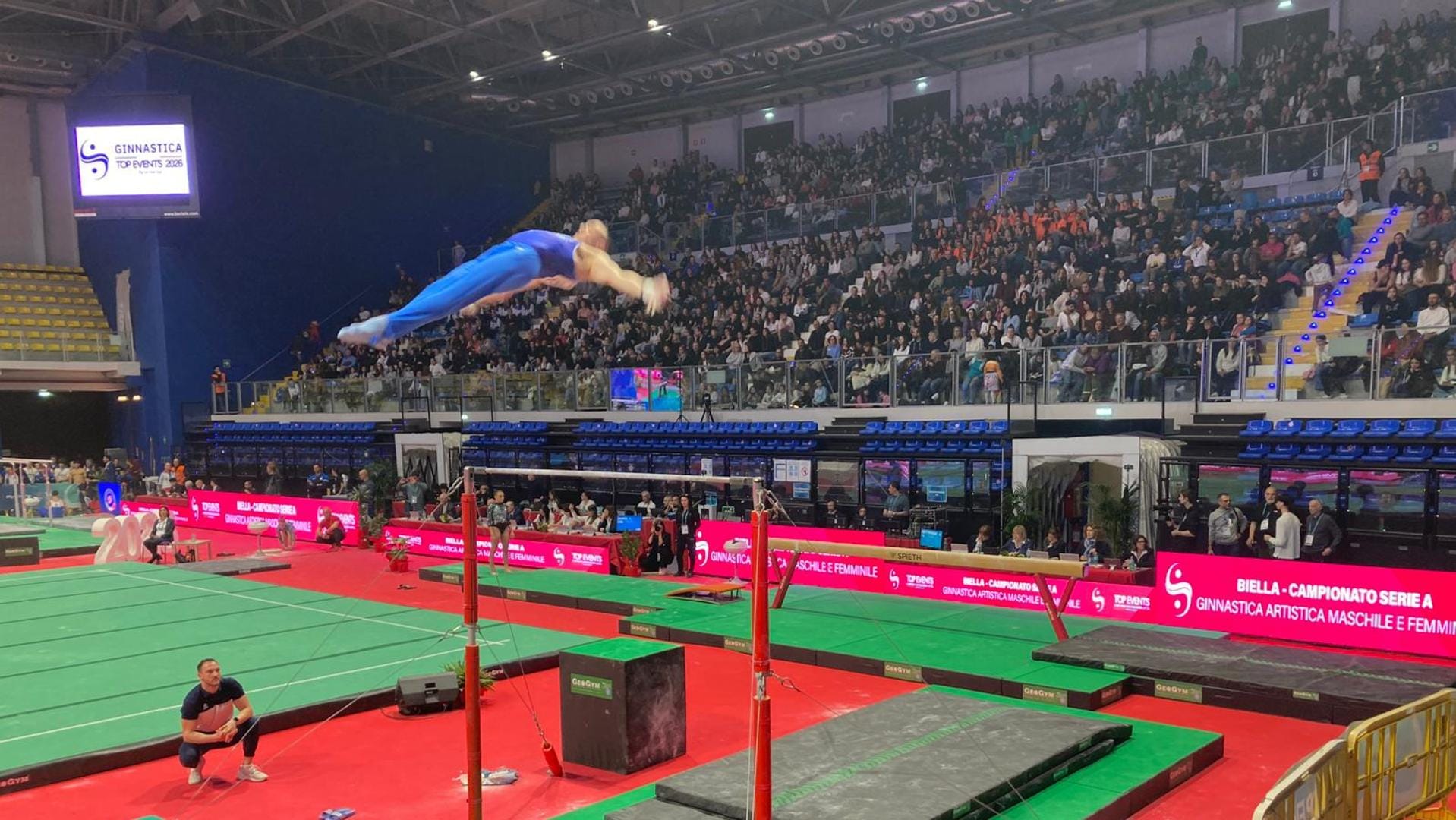 Vince quasi in casa la Libertas Vercelli, brilla la stella biellese Artemisia Iorfino, fanno stropicciare gli occhi le prestazioni di campioni e campionesse di livello internazionale ma soprattutto festeggiano una giornata indimenticabile almeno 2500 appassionati e (in maggioranza) appassionate di ginnastica artistica: la serie A (e A2 e B) che ha fatto tappa al Forum è stata un successo di pubblico e un grande momento di sport. Mai si erano viste, in pedana o ai suoi margini, così tante medaglie olimpiche, mondiali, europee e giovanili di una stessa disciplina. Manila Esposito, bronzo alla trave e argento a squadre a Parigi 2024, è tornata apposta per spingere la sua Civitavecchia dal decimo al terzo posto grazie a un suo solo esercizio all’attrezzo che le ha consegnato la gloria a cinque cerchi, premiato dai giudici con 14,200, due decimi in più da quello che le fece conquistare la medaglia. Tra riposo e convalescenze, c’era un parterre davvero sontuoso, fatto di chi ha l’abitudine a vestire l’azzurro: D’Amato, Andreoli, Iorio e, per regalare un’emozione in più al pubblico che si è messo a caccia di autografi e foto ricordo per l’intero pomeriggio, anche Lorenzo Bonicelli, l’atleta che si è infortunato in modo gravissimo alle Universiadi nel luglio scorso. A Biella è stata la sua prima uscita pubblica a margine di un evento legato al suo sport: un lungo applauso lo ha salutato mentre, dalla sedia a rotelle e con i movimenti ancora limitati dalle conseguenze di quel trauma, ha ringraziato il pubblico, prima di godersi la gara.