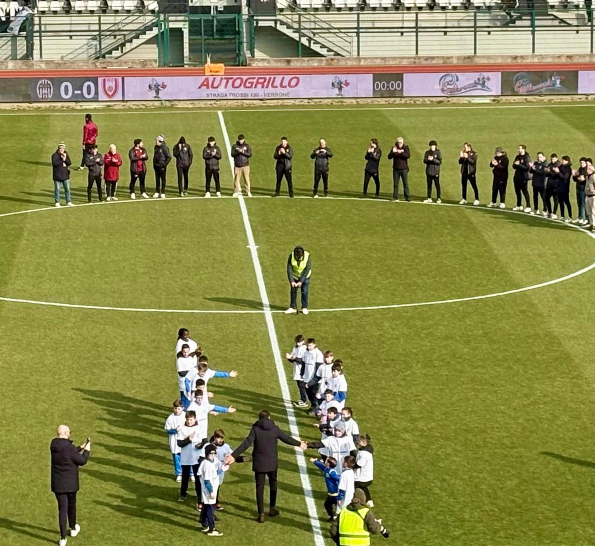 Da segnalare, prima dell’inizio della partita, la premiazione di mister Luca Prina per aver raggiunto le 100 partite alla guida della Biellese. E’ stato anche esposto lo striscione #ioNONsonounbullo, iniziativa contro il bullismo promossa dalla società bianconera e da Mawdy Italia: una ventina di bambini di varie società del territorio hanno portato uno striscione al centro del campo.