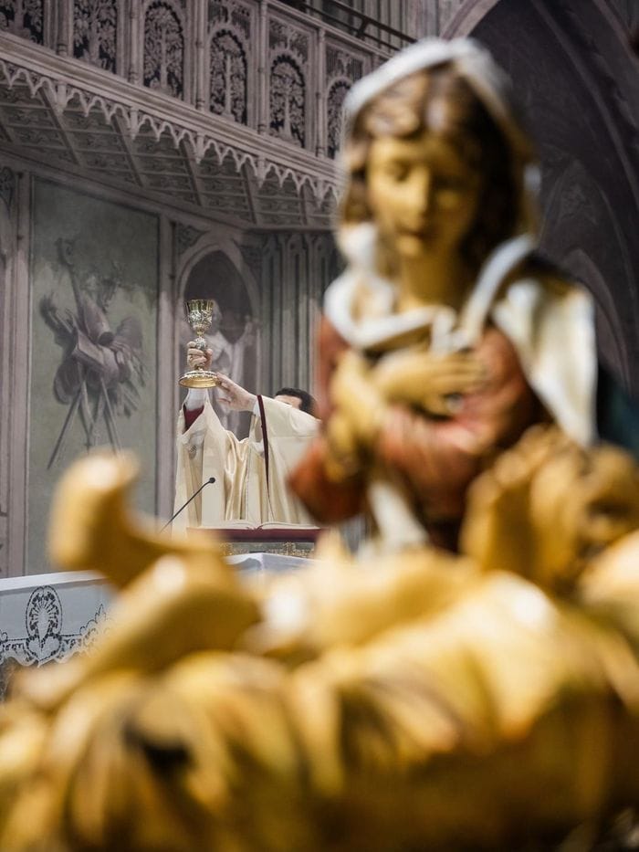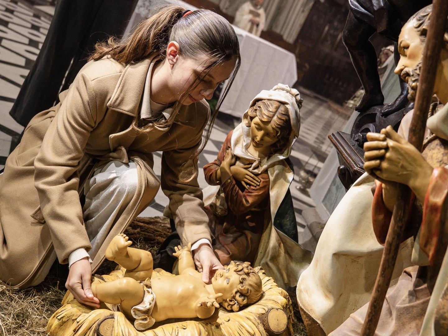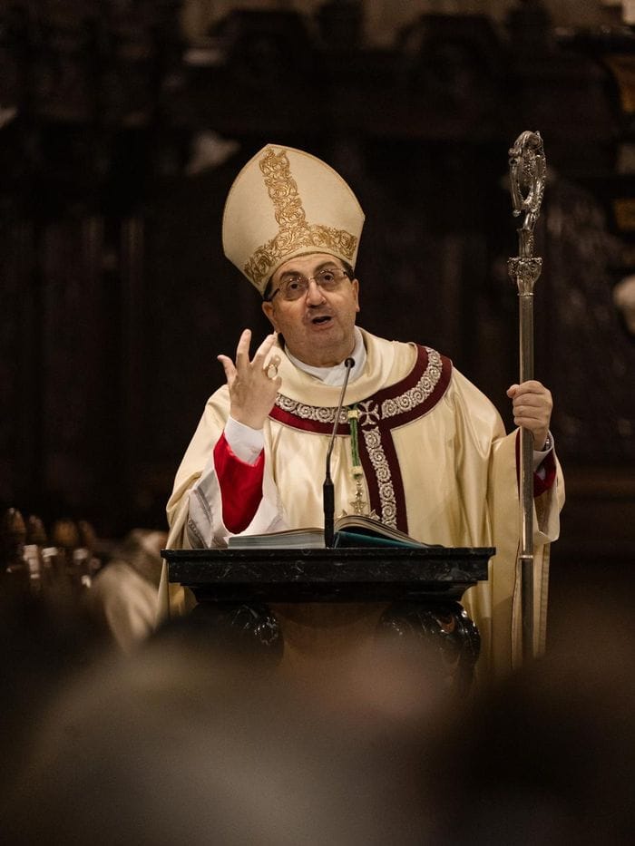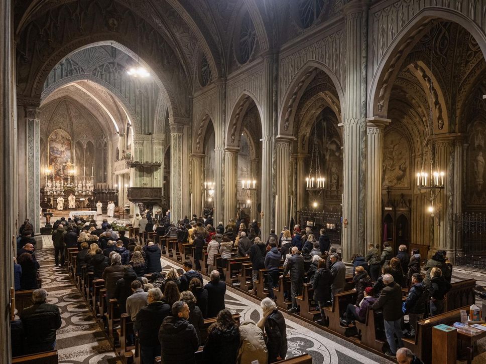 Duomo gremito per la messa di mezzanotte di Natale. Ad officiare il vescovo Roberto Farinella: «Cari fratelli e sorelle, nel Vangelo di questa notte risuonano le parole che hanno segnato la storia dell’umanità: “Oggi è nato per voi il Salvatore, che è Cristo Signore”. È un annuncio che irrompe nella notte come una luce improvvisa. Il Salvatore nasce lontano dai luoghi del potere, in un’umile mangiatoia, affidato alle mani di Maria e custodito da Giuseppe. Dio sceglie la povertà di una casa qualunque, la fragilità di una vita appena iniziata. Così ci rivela il luogo in cui desidera entrare: la realtà concreta delle nostre esistenze, con i loro limiti e le loro attese, con cuori capaci di aprirsi alla sua presenza. Cristo desidera entrare nella nostra vita per cambiarla da dentro. In questa notte santa la luce che nasce a Betlemme chiede di essere portata, con discrezione, coraggio e fiducia, nel mondo che ci è affidato. Buon Natale a tutti. Gesù Bambino, il Salvatore del mondo, è nato per noi».